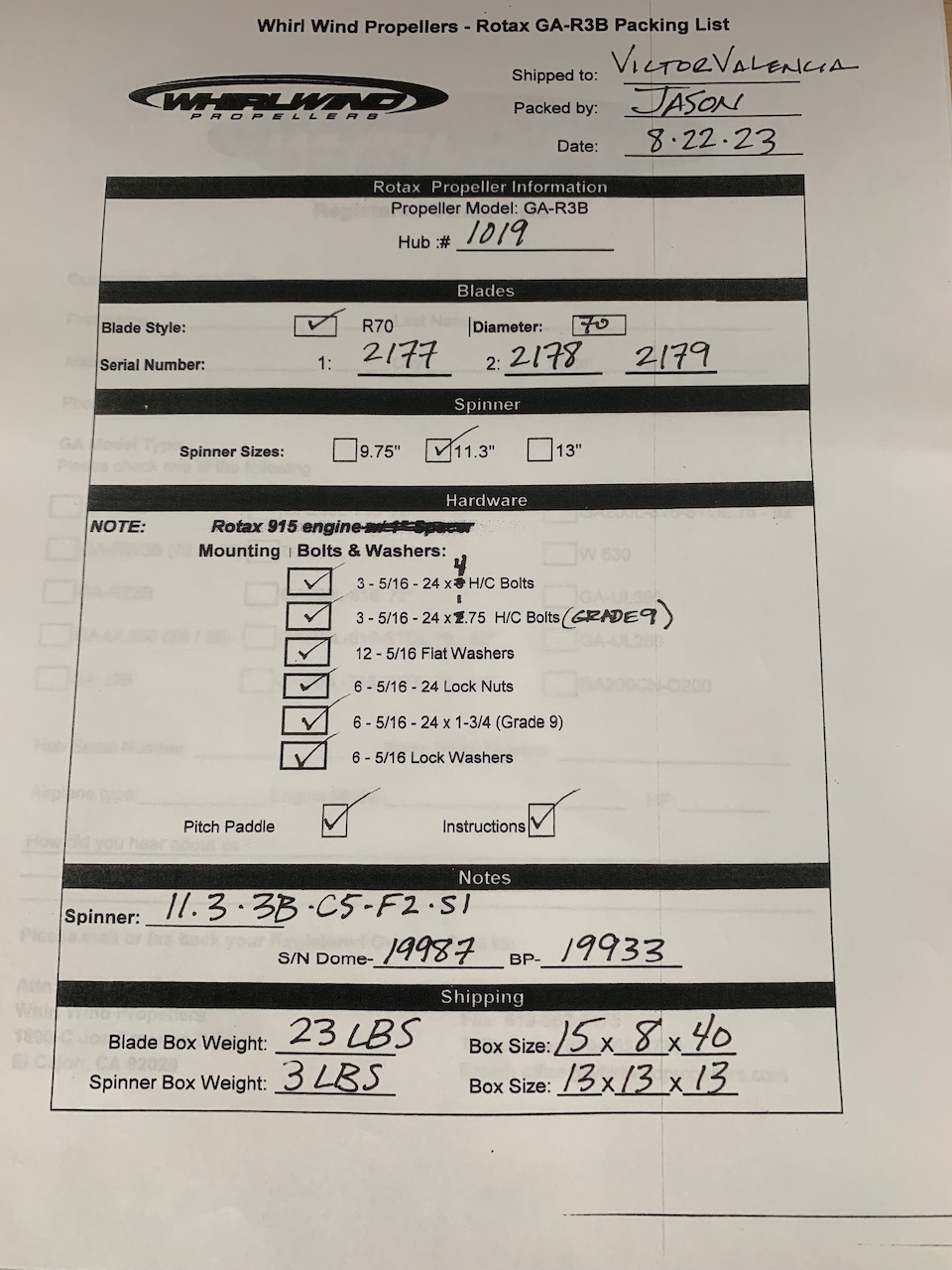 Prop details in pics. I can provide a copy of the original invoice upon request.